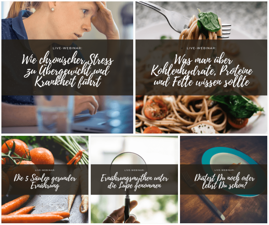 Du hast nicht die Möglichkeit oder Zeit an einem Präsenz-Format zum Thema Ernährung und/oder Stress teilzunehmen? Kein Problem: Auf dieser Seite findest Du mein aktuelles Angebot von Live-Webinaren. Für diese Webinare habe ich die beliebtesten Inhalte meiner Workshops und Vorträge als kompakte und leicht verdauliche Häppchen zusammengefasst. Schau doch einfach mal rein – es ist bestimmt etwas für Dich dabei! Die Teilnahme ist kinderleicht! Alles, was Du darüber wissen musst, habe ich in den folgenden Hinweisen für Dich zusammengefasst.